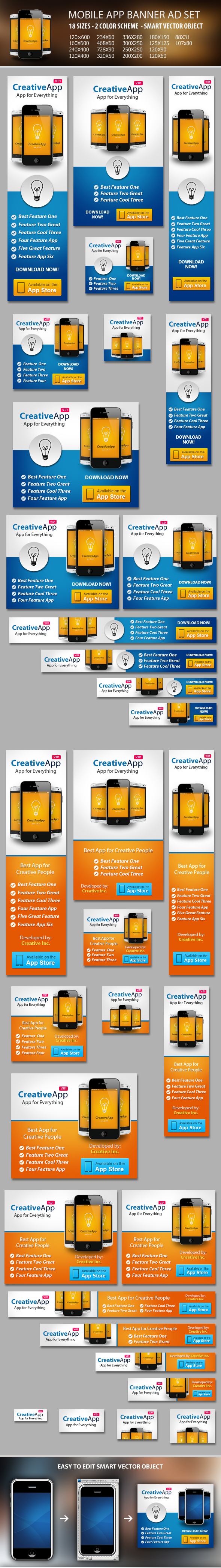Mobile App Banner ad Set. Support for Google Adword Desktop and Mobile ads, Facebook ads, etc. Total 36 PSD files in pack. Dont forget to give five stars if you like this item.