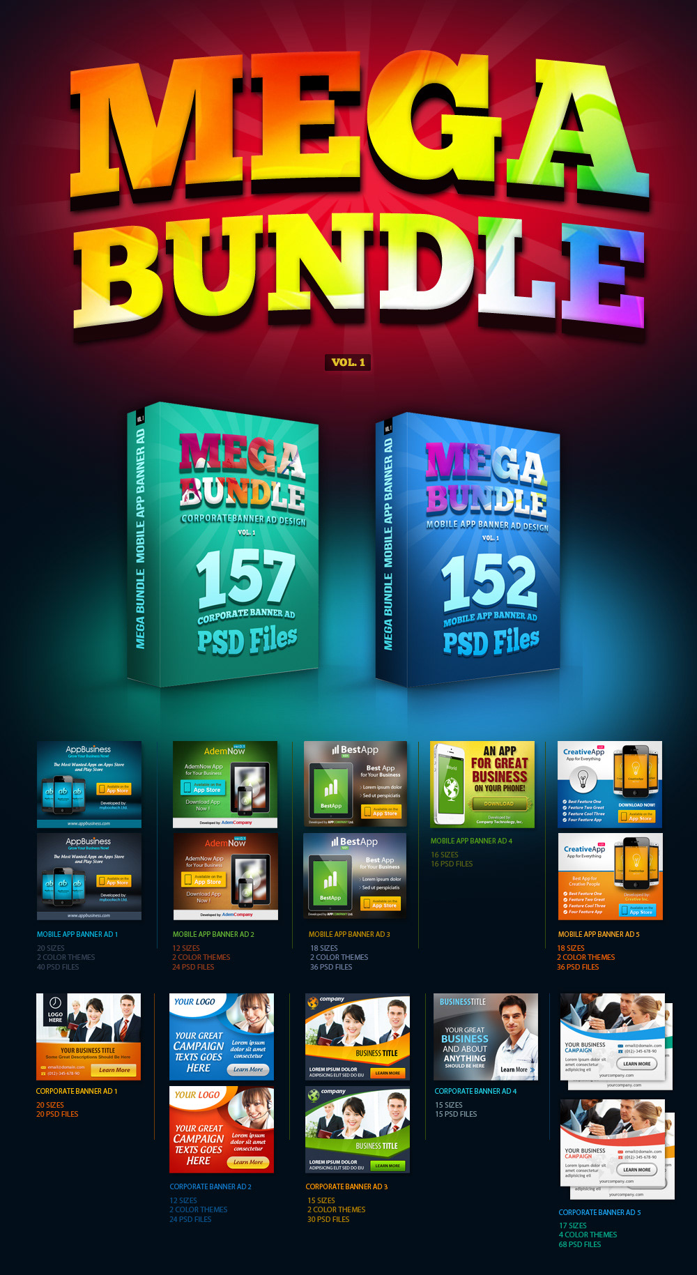 MEGA BUNDLE Vol. 1 Corporate & Mobile App Banner ad Design Set!! BEST DEAL FOR YOU!!!